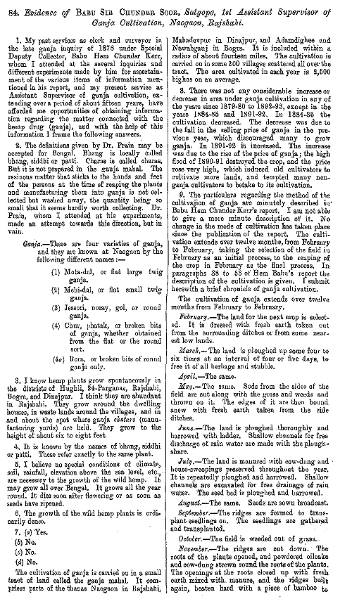 The Indian Hemp Drugs Commission report is most detailed with regard to Bengal as compared to the other parts of India. We see, at the time of the Hemp Commission's report in 1894-95, that Bengal had already been severely affected by the measures taken to regulate and prohibit cannabis. Despite this, we see from the report how cannabis was still a significant part of the life of the people of Bengal.